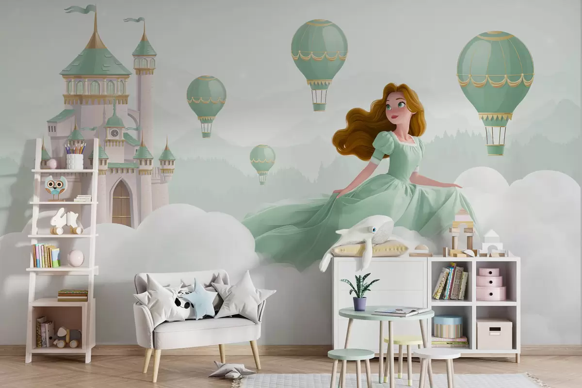 Carta da parati Principessa tra le nuvole sullo sfondo del paesaggio con il castello nr. w04015v2
