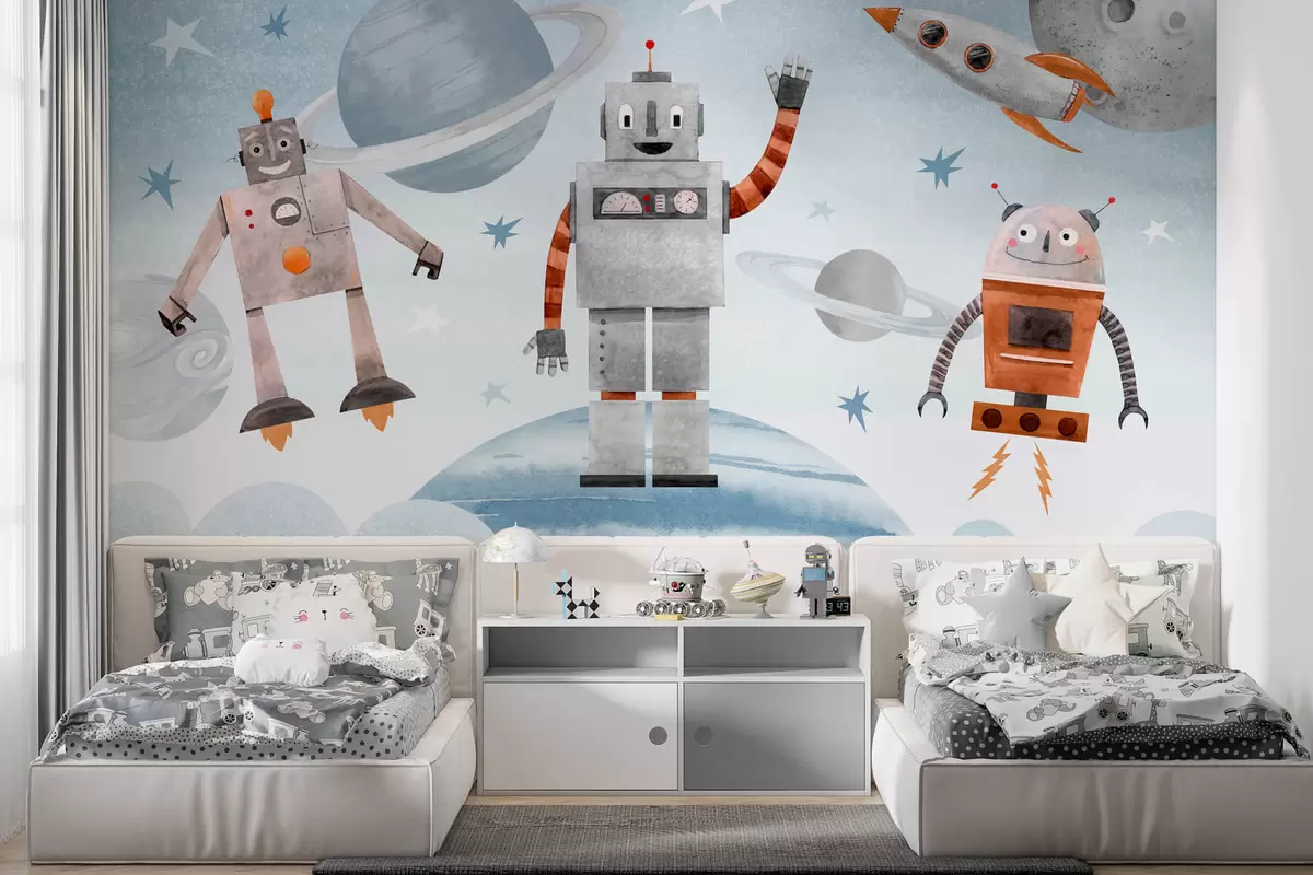 Carta da parati Robot nello spazio in stile acquerello nr. w04016