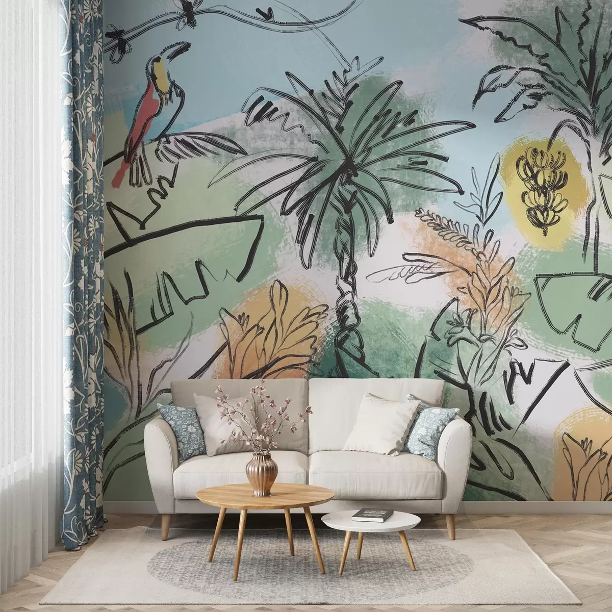 Carta da parati Stampa tropicale con pappagalli, colori ricchi, tropici nr. w04019