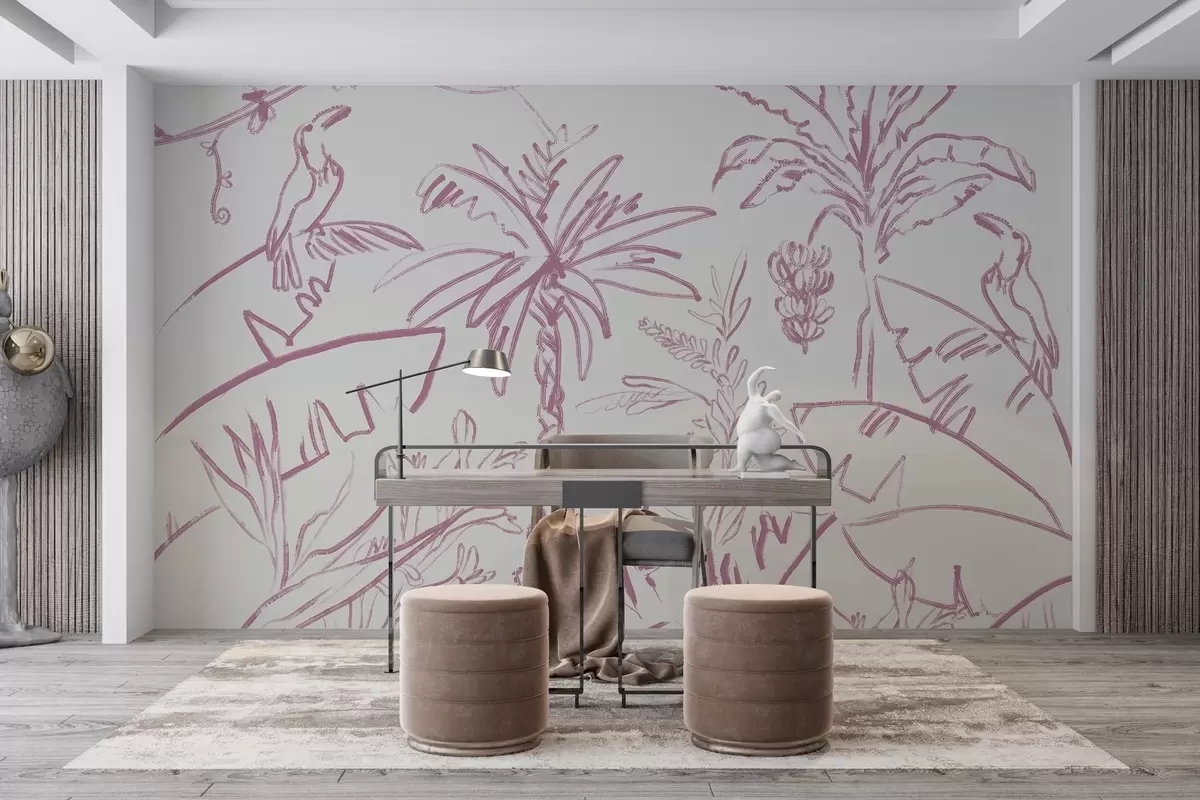 Carta da parati Linee tropicali in rosa, piante tropicali, banane nr. w04020v2