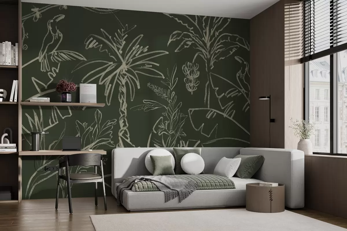 Carta da parati Motivo tropicale su sfondo verde scuro, palme e banane nr. w04020v5