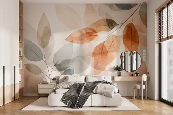 Carta da parati foglie in stile acquerello nei toni del seppia e del grigio nr. w04024