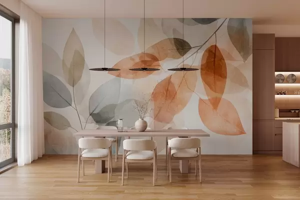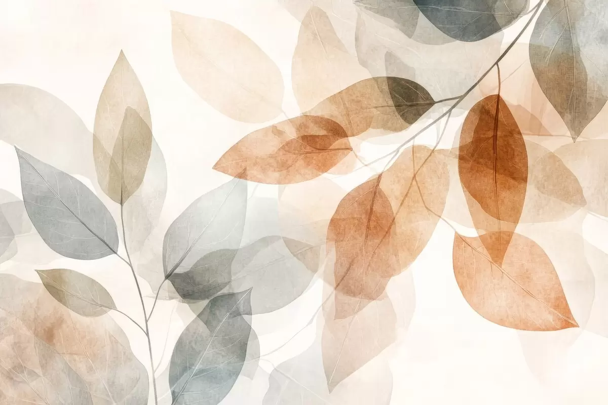 Carta da parati foglie in stile acquerello nei toni del seppia e del grigio nr. w04024