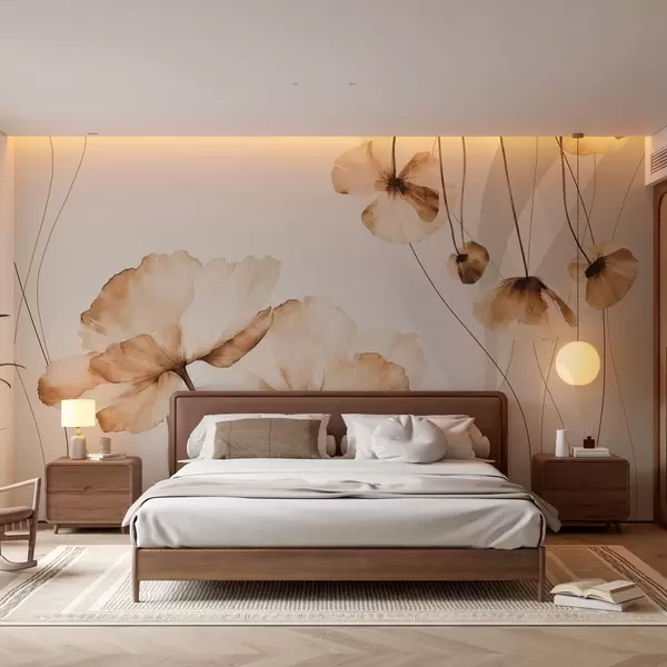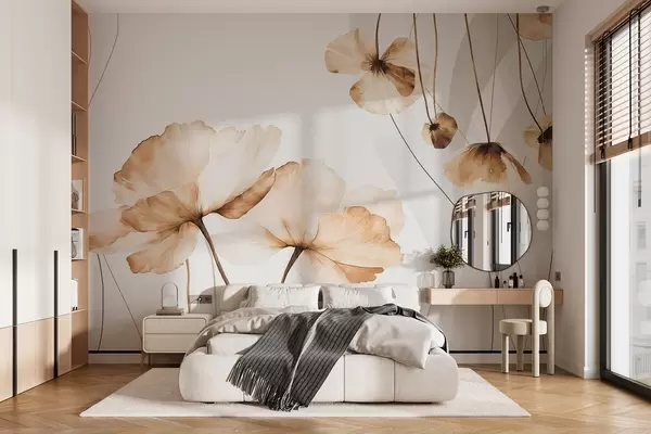 Carta da parati fiori in stile acquerello nei toni del marrone nr. w04026