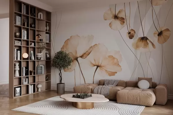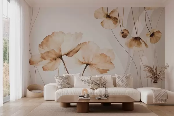 Carta da parati fiori in stile acquerello nei toni del marrone nr. w04026
