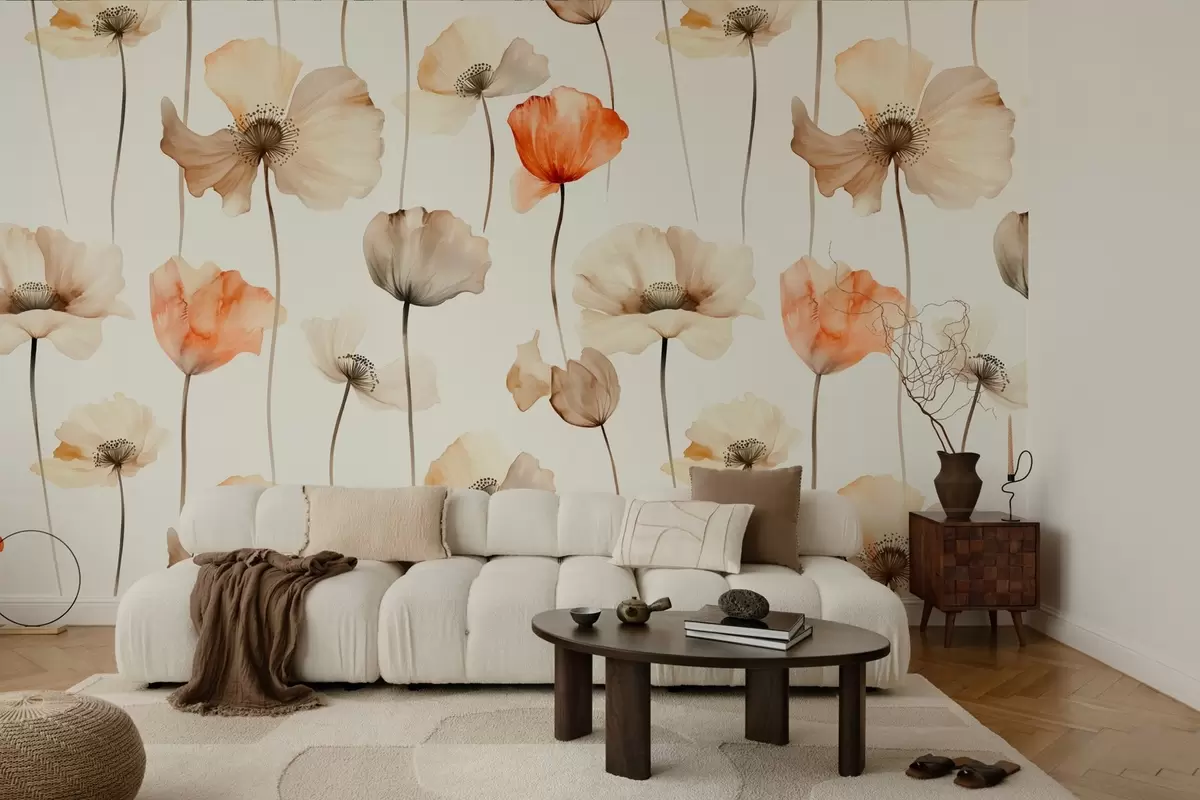 Carta da parati papaveri ricci in stile acquerello nr. w04031