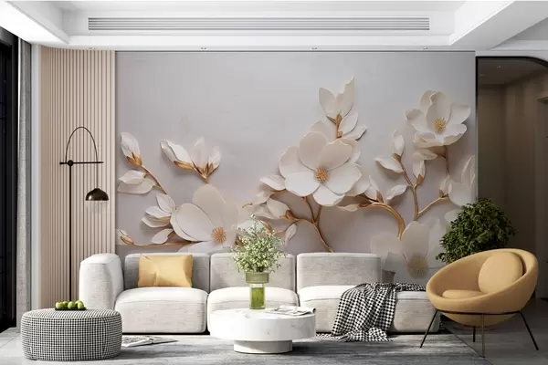 Carta da parati Eleganti fiori in rilievo con steli dai toni tenui formano una scena tranquilla e armoniosa nr. w04039