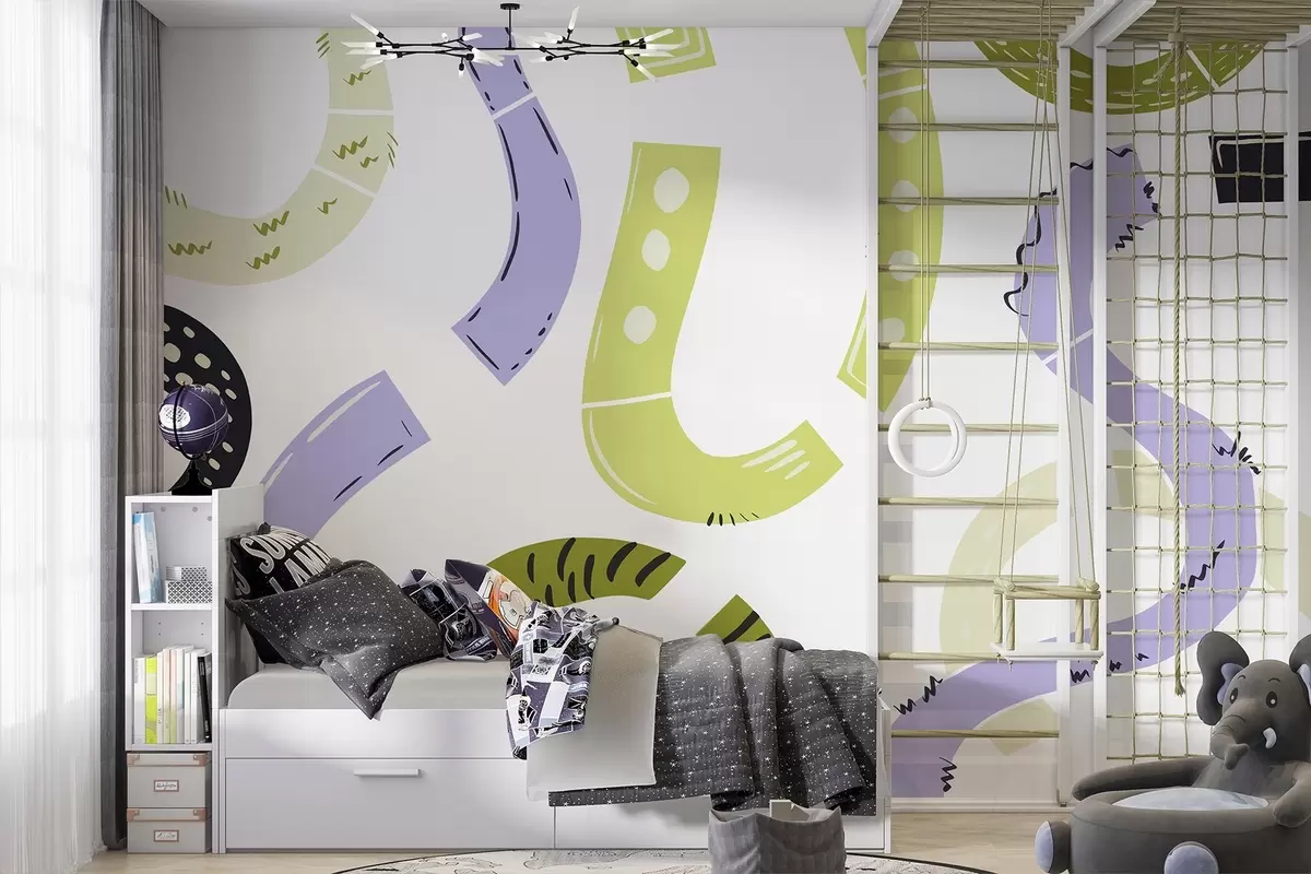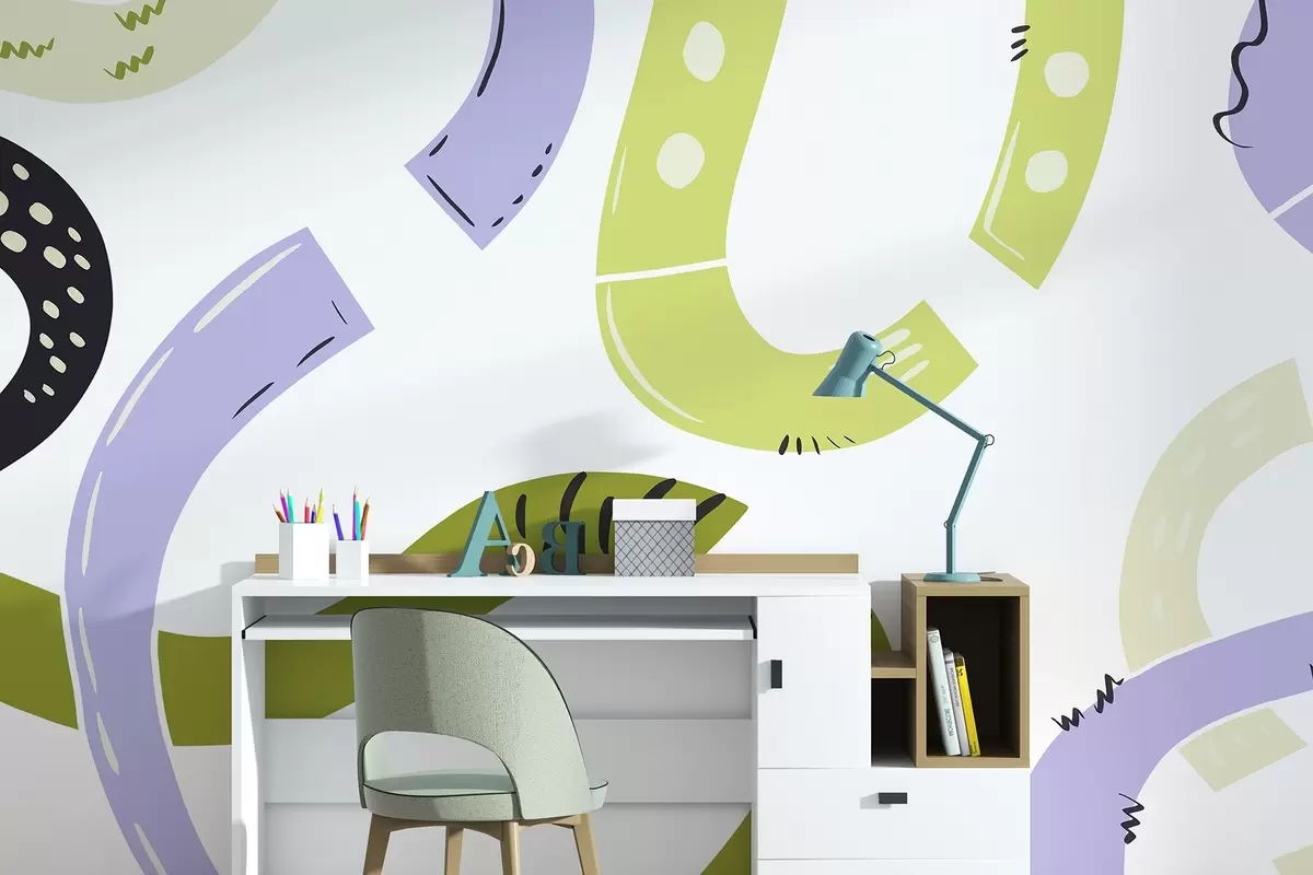 Carta da parati Disegni astratti, giovanile, scarabocchi, verde, viola nr. w04066v1