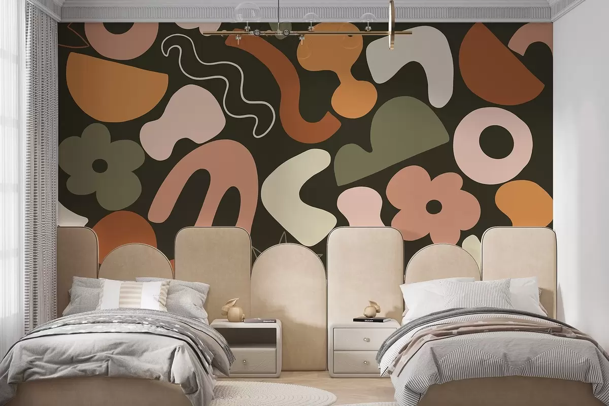 Carta da parati Figure geometriche, giovani, astrazione, sfondo verde scuro nr. w04067v2