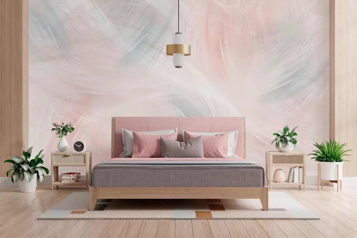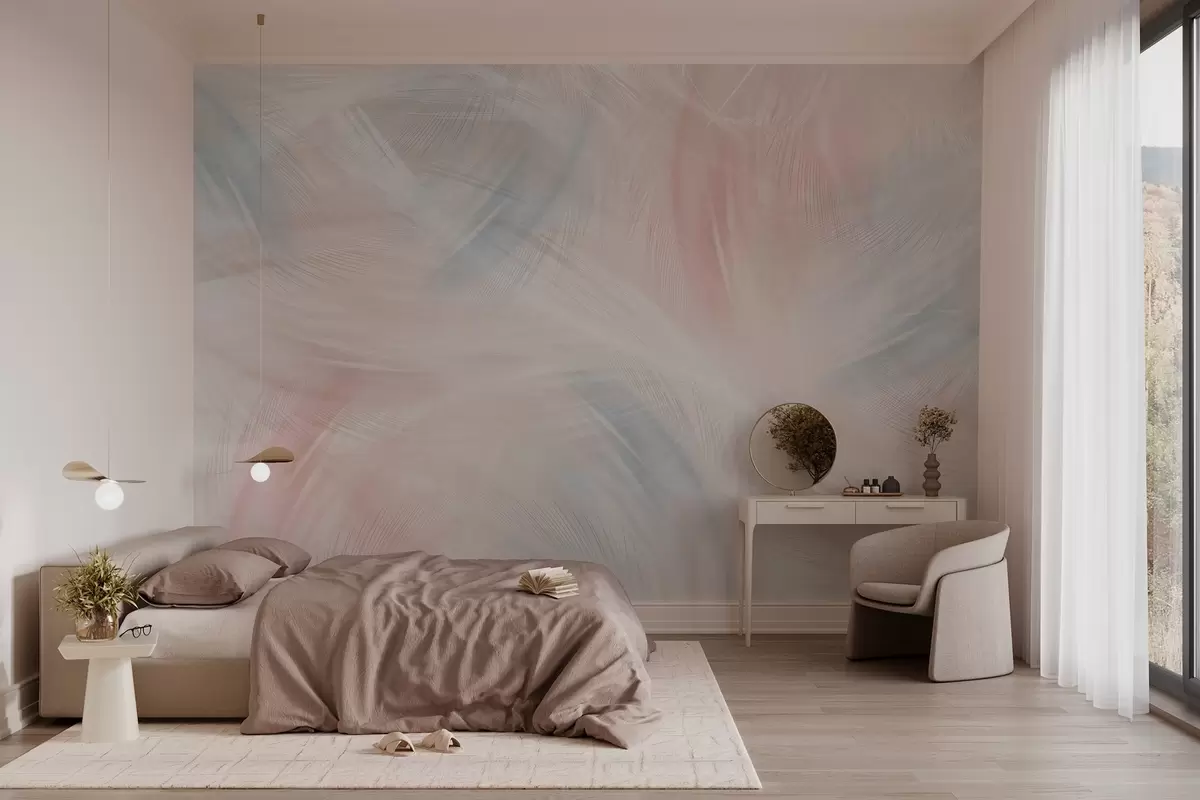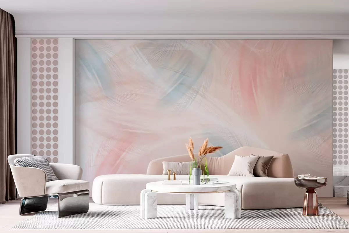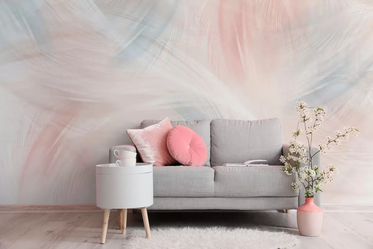 Carta da parati piume ariose nei toni del rosa e dell'azzurro nr. w04071