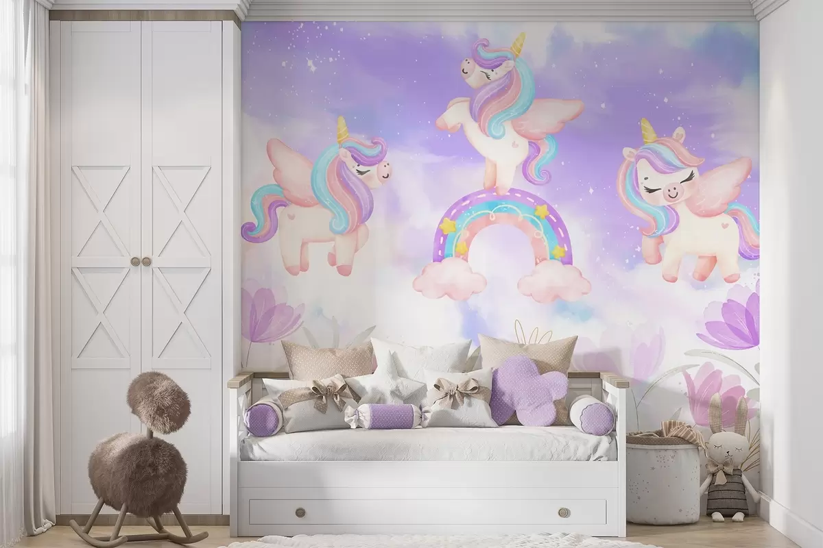 Carta da parati Unicorni su un arcobaleno nr. w04084