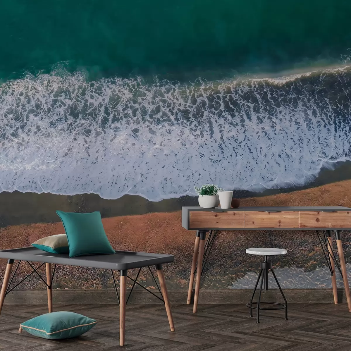 Carta da parati Onde dell'oceano, spiaggia, fotografia aerea, realismo, estate nr. w04095