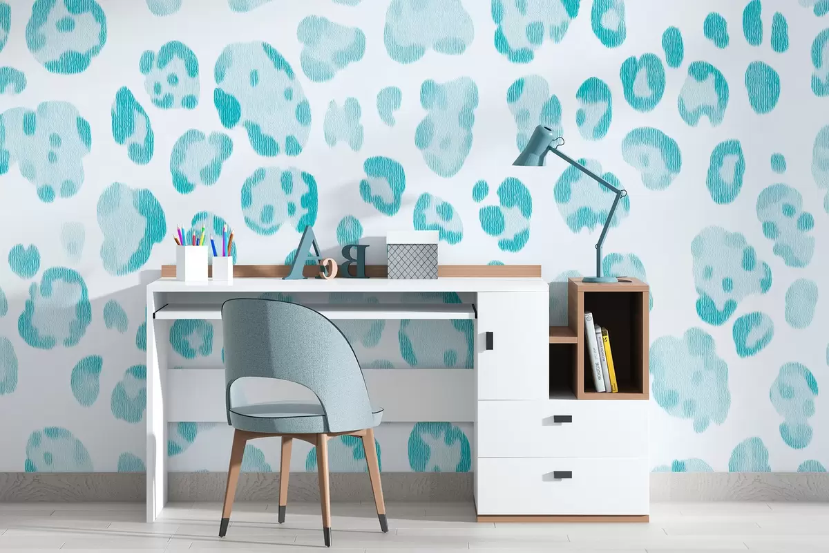 Carta da parati Stampa leopardo, struttura in lana, colore blu nr. w04112