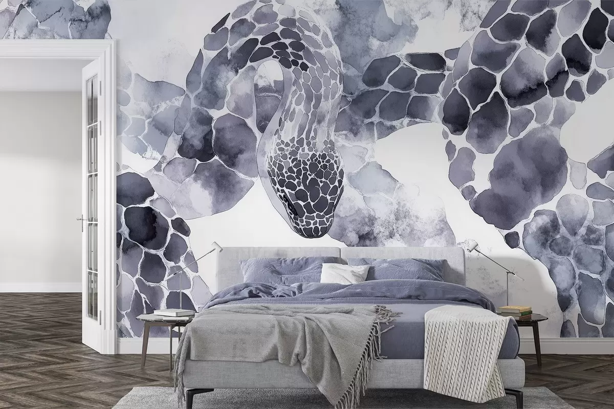 Carta da parati Silhouette di serpente, stile acquerello, colori blu nr. w04113