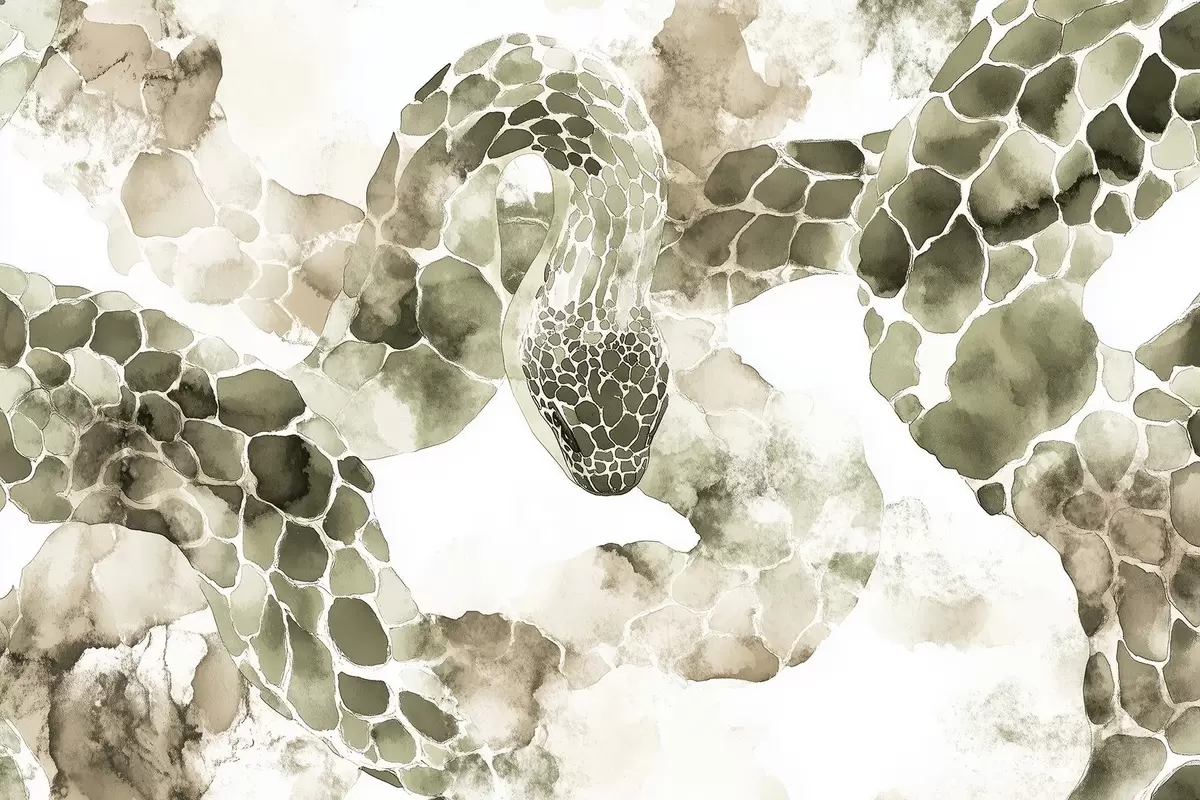 Carta da parati Sagoma di serpente, stile acquerello, colori oliva nr. w04113v3