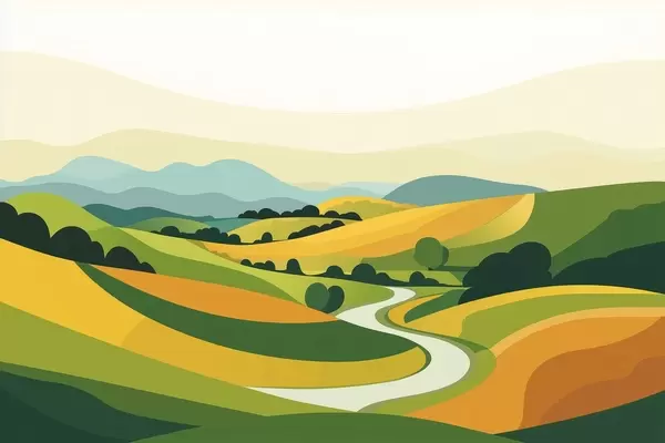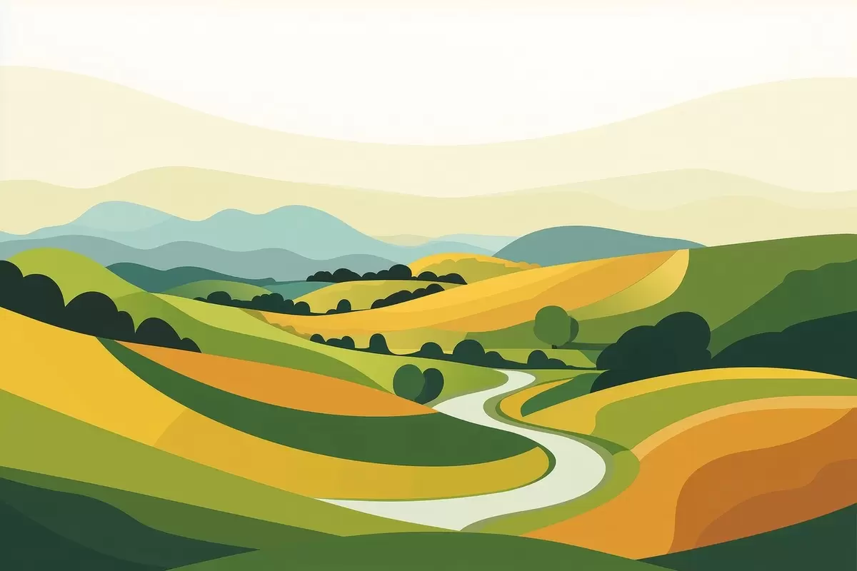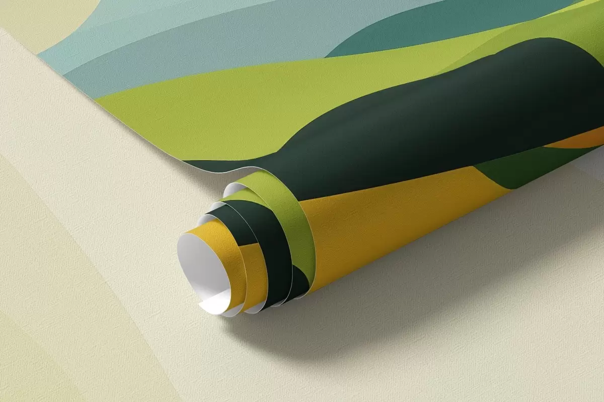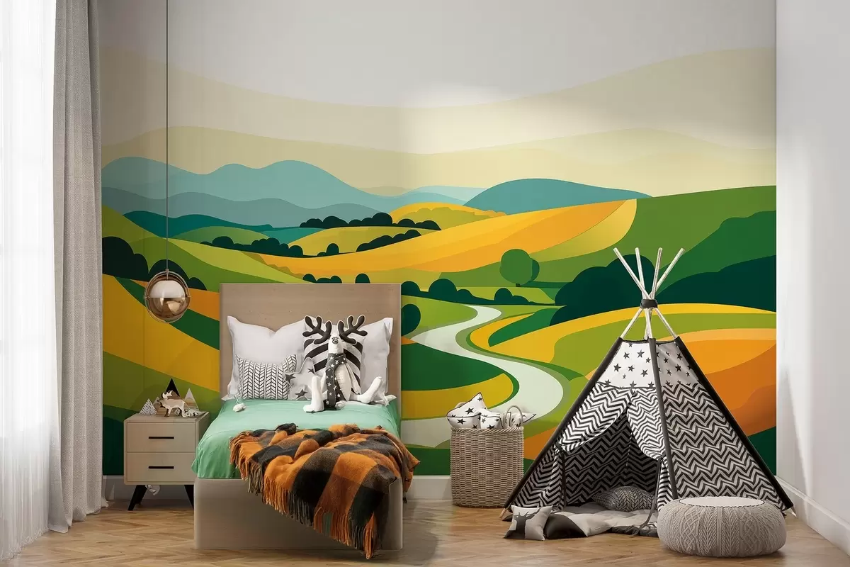 Carta da parati Paesaggio astratto con colline e alberi, colori vivaci nr. w04116