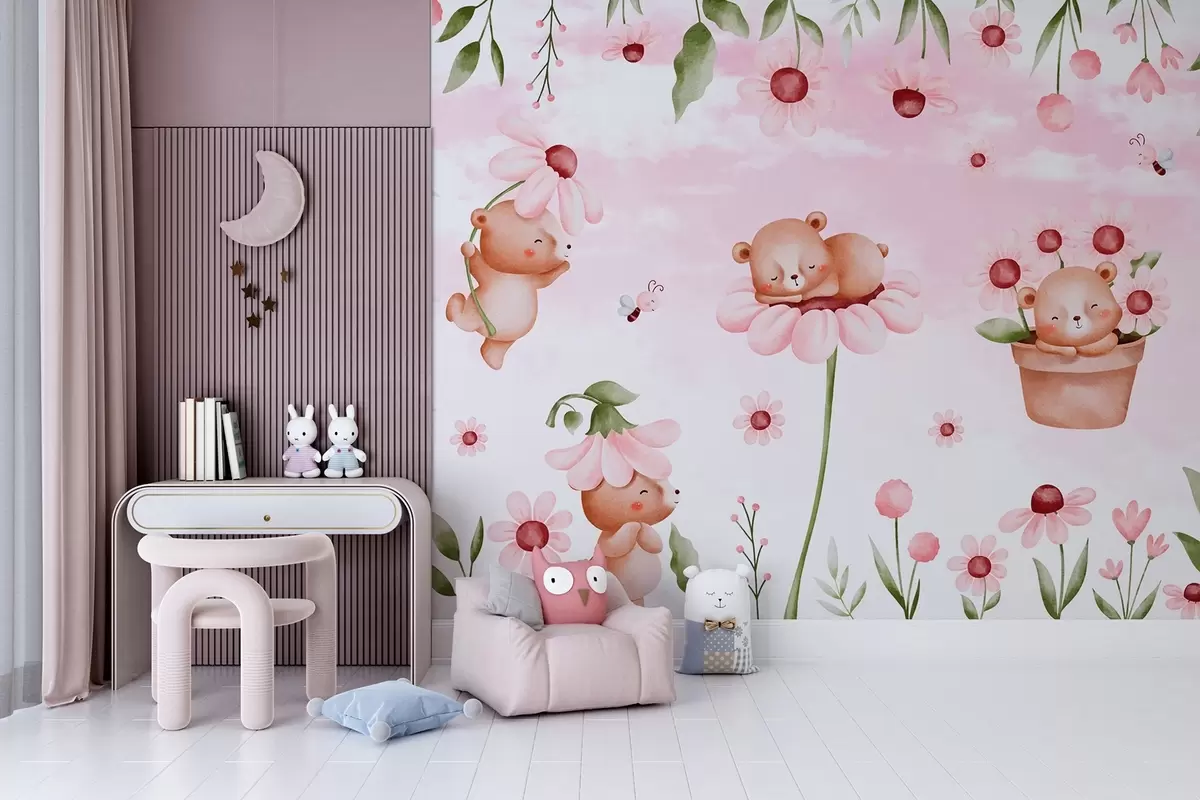 Carta da parati Orsi con fiori, animali da favola nr. w04143