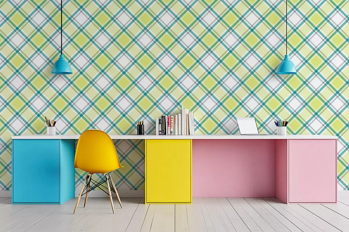 Carta da parati motivo a scacchi nei toni del giallo nr. w04167v1