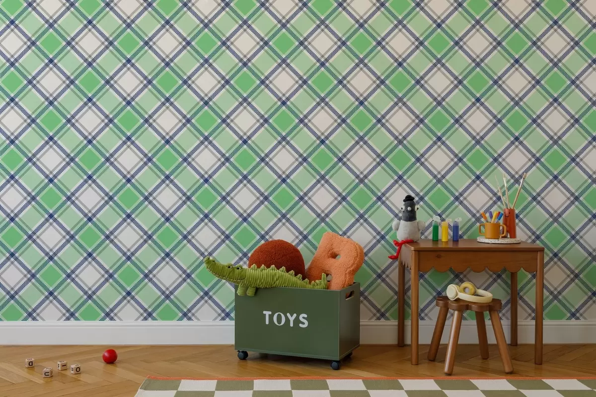 Carta da parati motivo a scacchi nei toni del verde nr. w04167v2