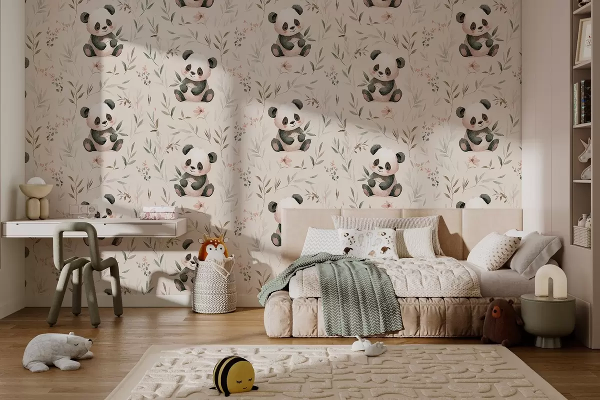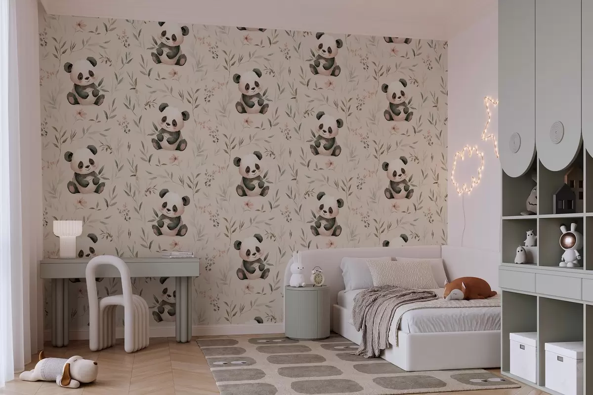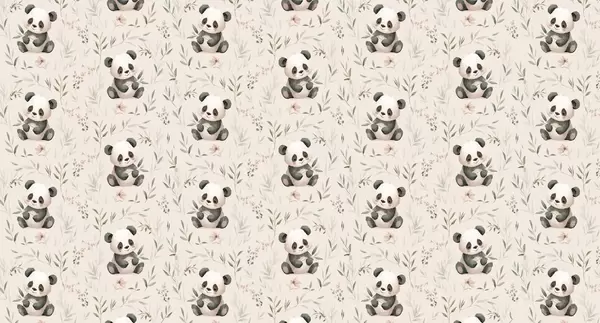 Carta da parati simpatici panda in stile baby tra le piante nr. w04170