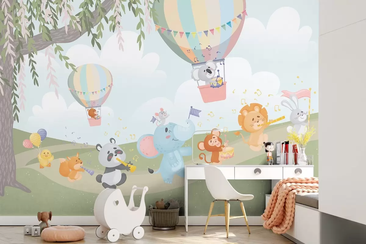 Carta da parati Paesaggio con animali che suonano strumenti musicali nr. w04200