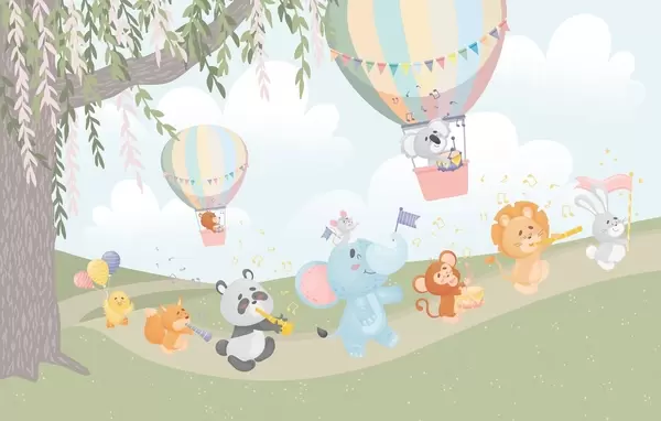 Carta da parati Paesaggio con animali che suonano strumenti musicali nr. w04200v1