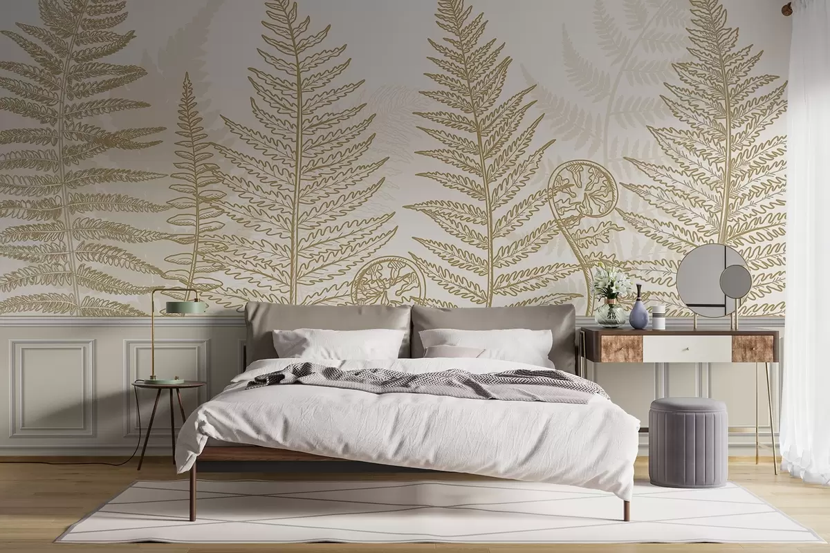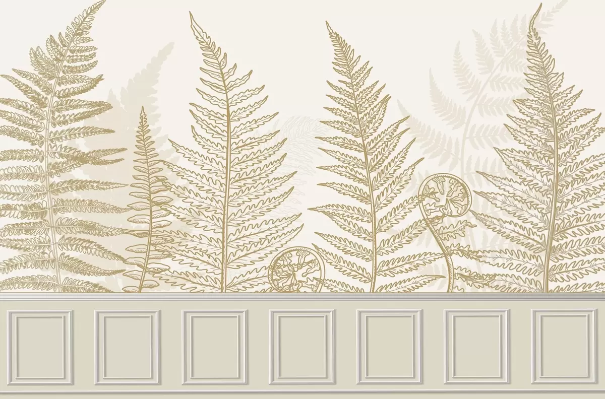 Carta da parati foglie, piante, felce, luce, botanica, grafica nr. w04239