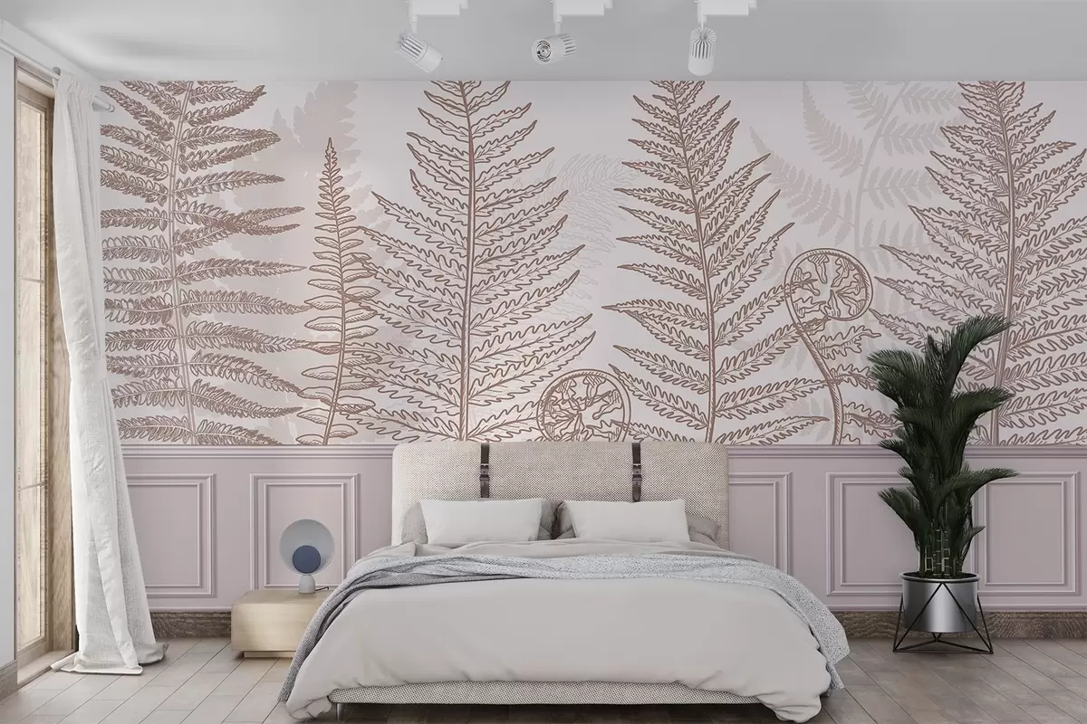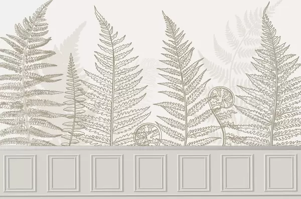 Carta da parati foglie, piante, felce, luce, botanica, grafica nr. w04239v1