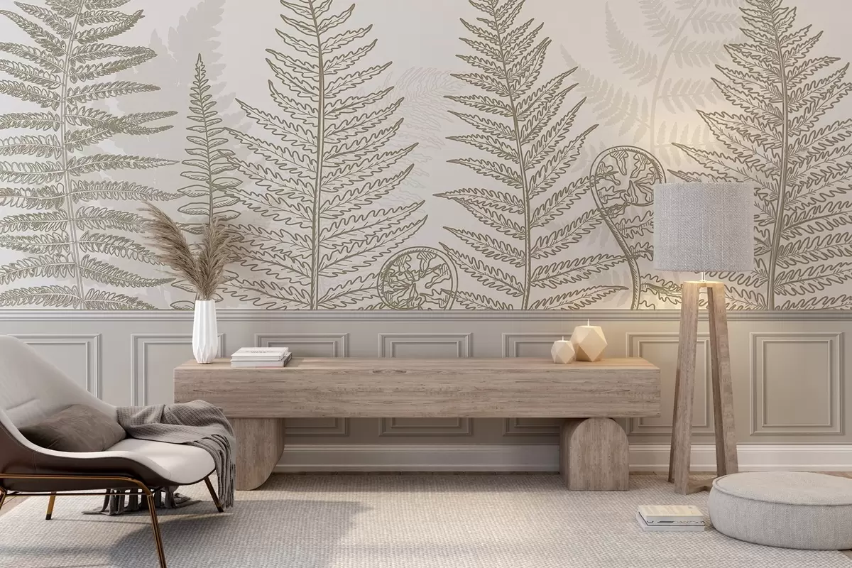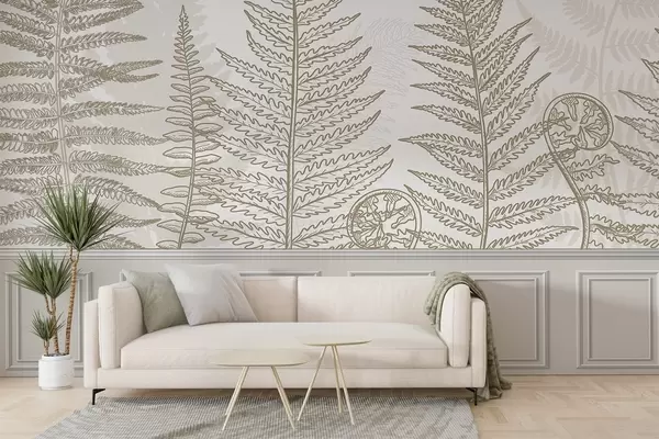Carta da parati foglie, piante, felce, luce, botanica, grafica nr. w04239v2