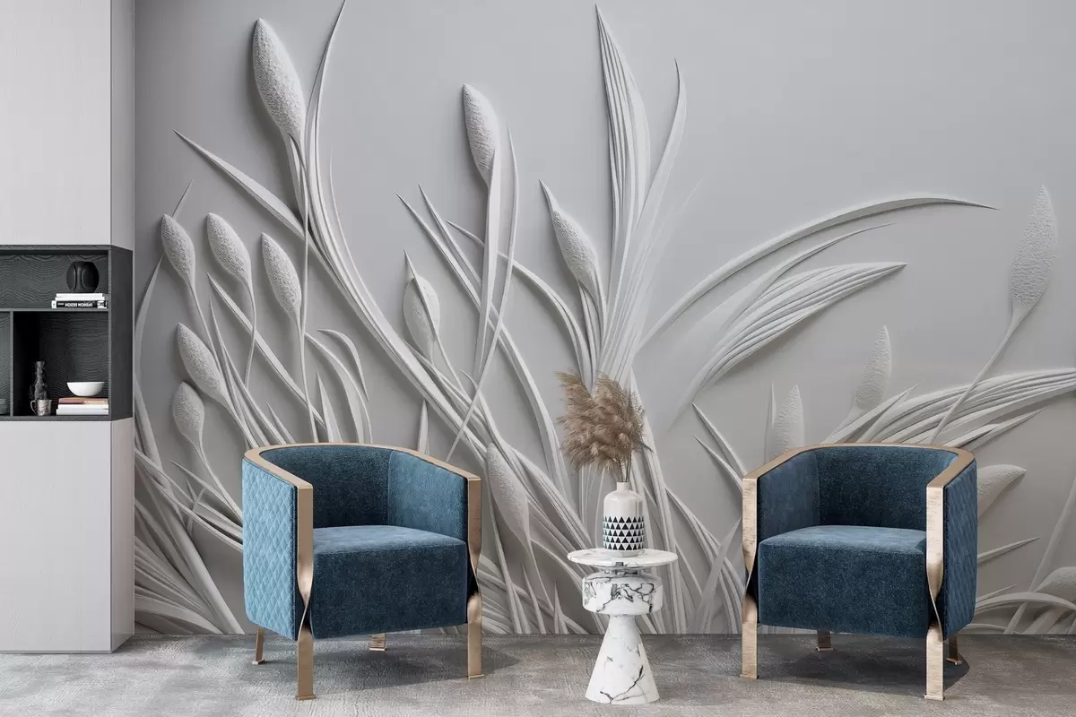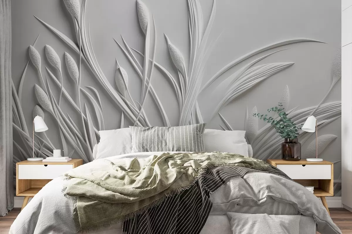 Carta da parati Bassorilievo con delicate foglie e pampa nr. w04247