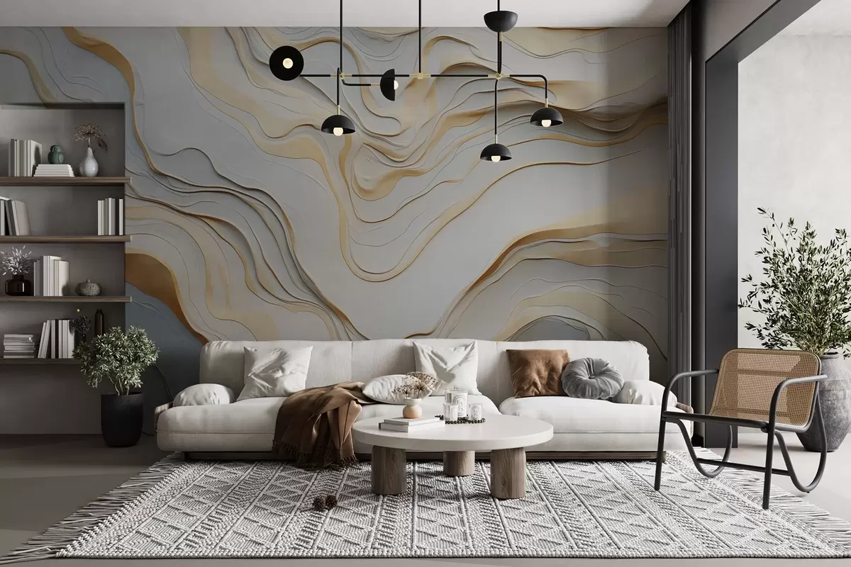 Carta da parati strati, onde, astrazione, beige, grigio, morbidezza, moderno nr. w04255