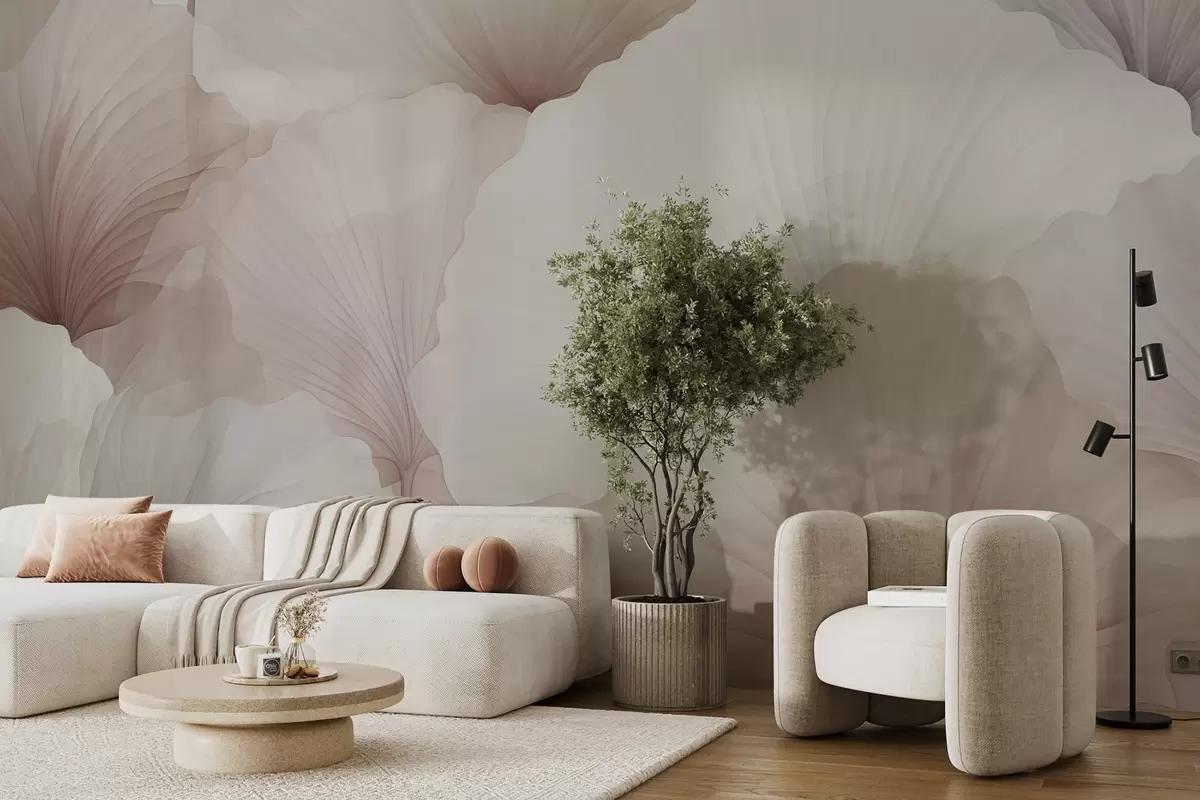 Carta da parati fiori, petali, crema, grigio, morbidezza, calma nr. w04256v1