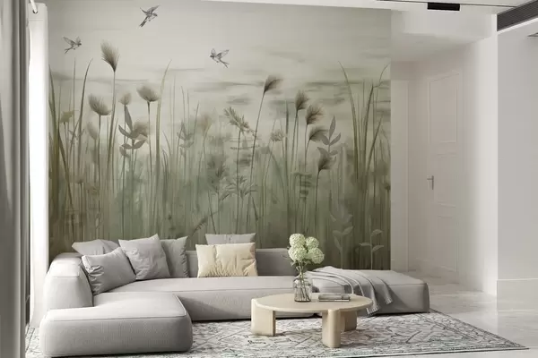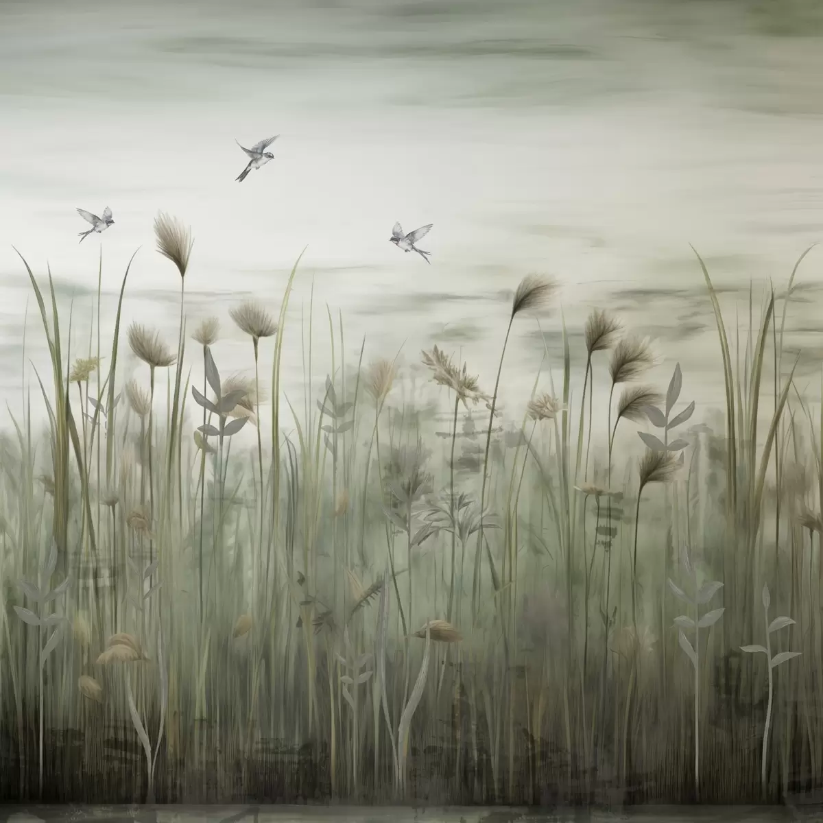 Carta da parati Versione leggera di paesaggio erboso con rondini nr. w04258
