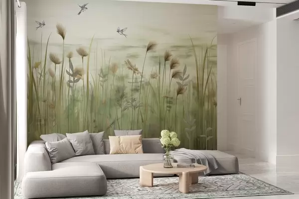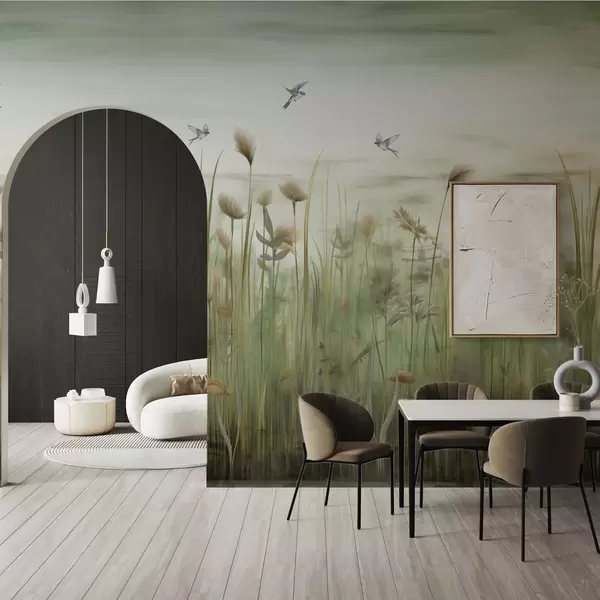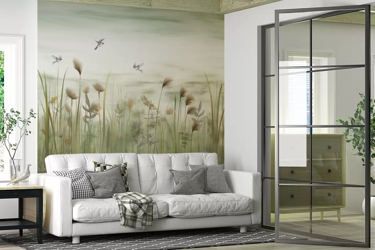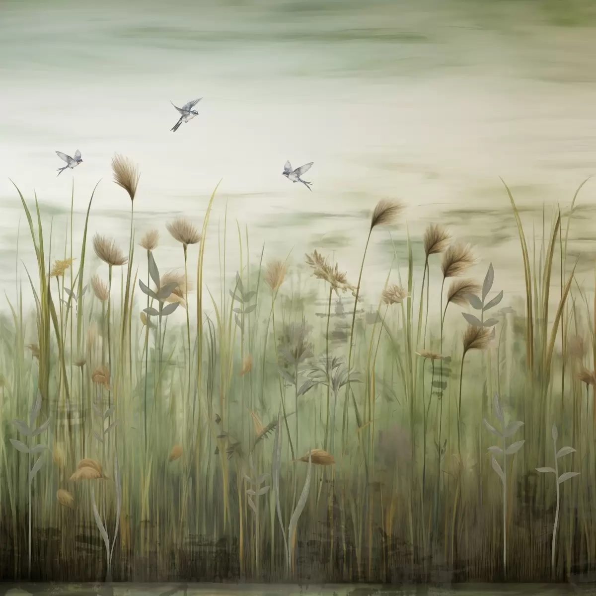 Carta da parati Paesaggio erboso con rondini contro un cielo morbido nr. w04258v1