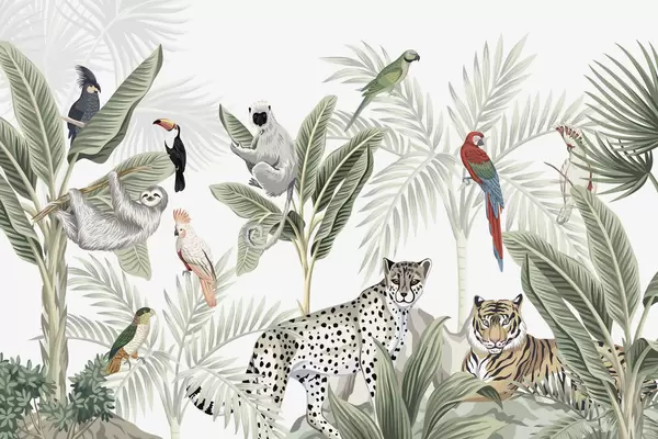 Carta da parati Animali e uccelli nella giungla nr. w04268