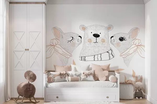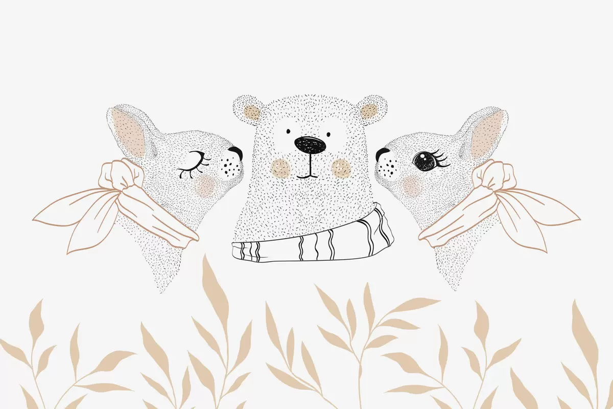 Carta da parati Animali divertenti, lepri e un cucciolo d'orso nr. w04269