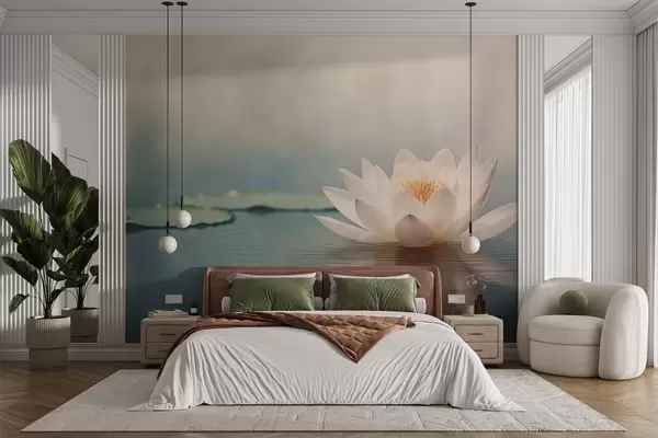 Carta da parati Fiore di loto bianco sull'acqua nr. w04272
