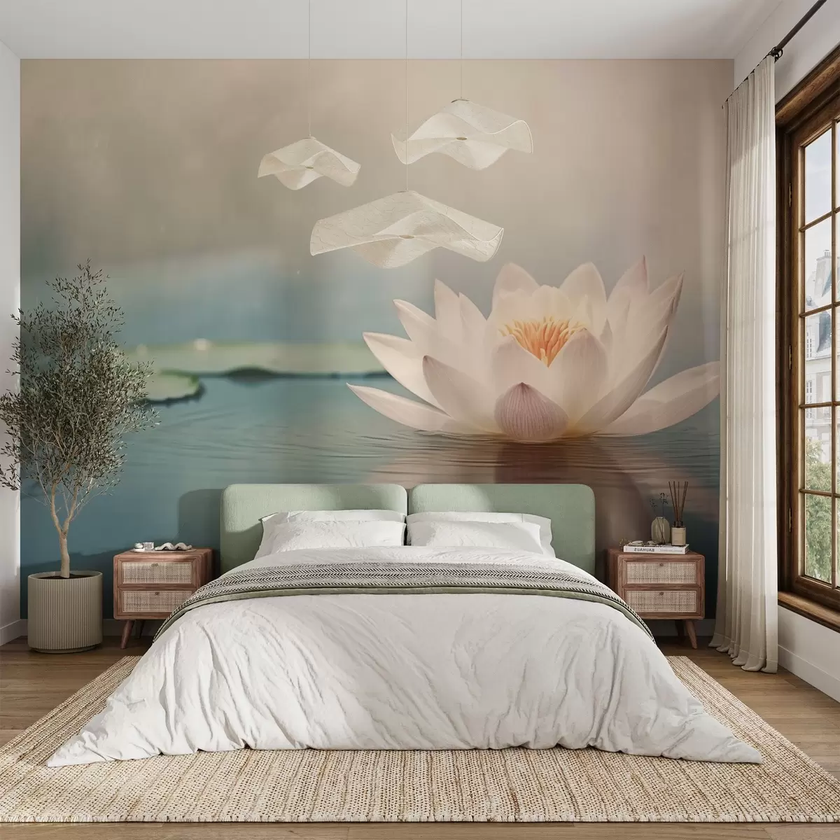 Carta da parati Fiore di loto bianco sull'acqua nr. w04272