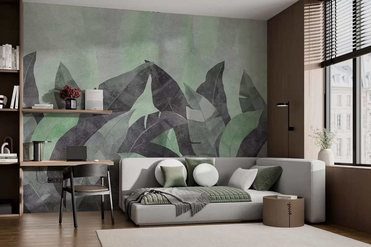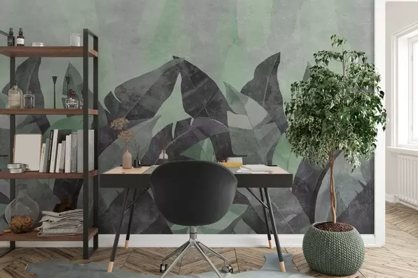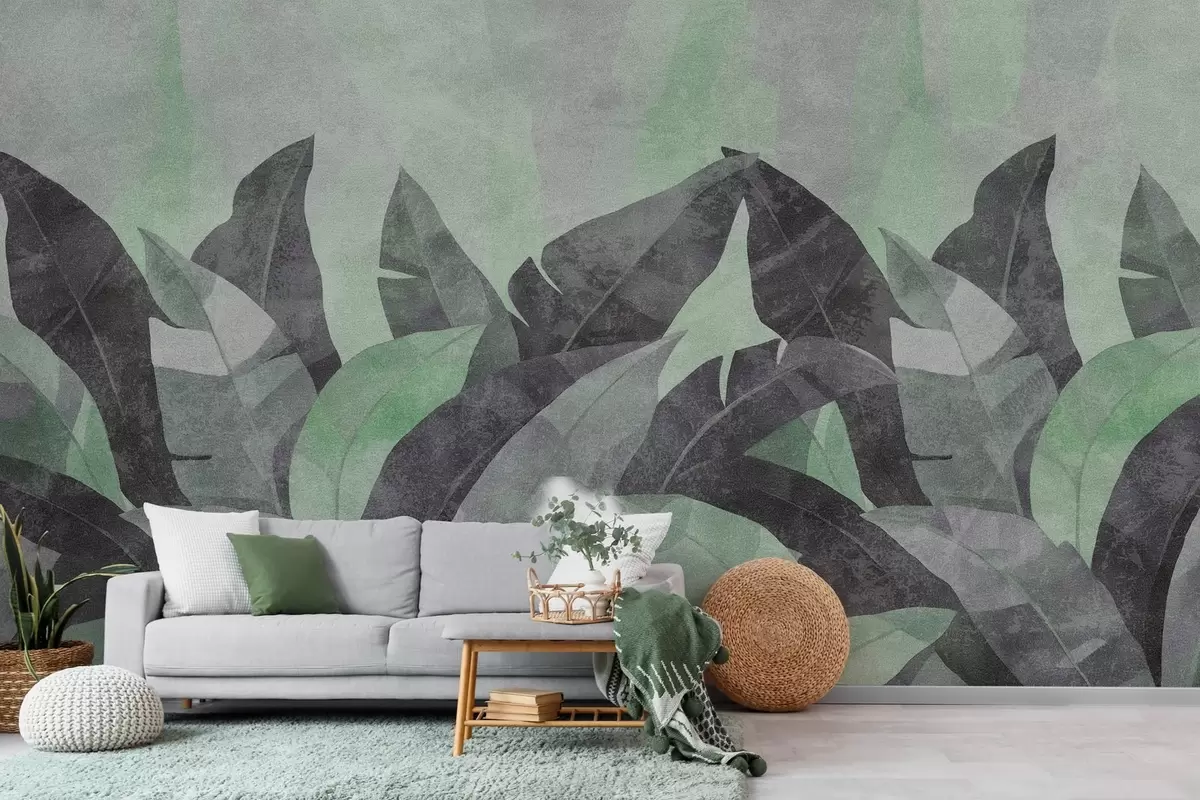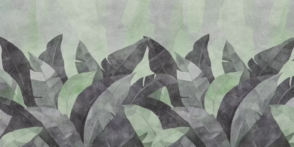 Carta da parati foglie di banano strutturate nei toni del verde e del grigio nr. w04285v1