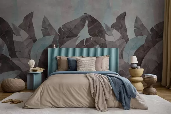 Carta da parati foglie di banano strutturate nei toni del blu e del grigio nr. w04285v2