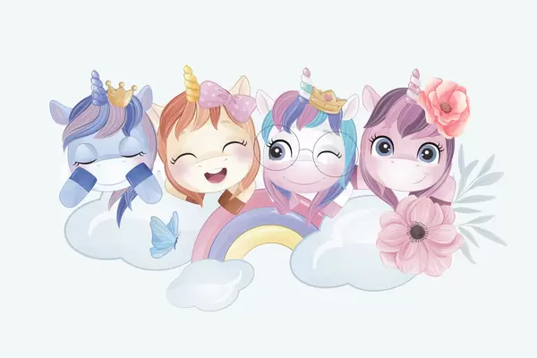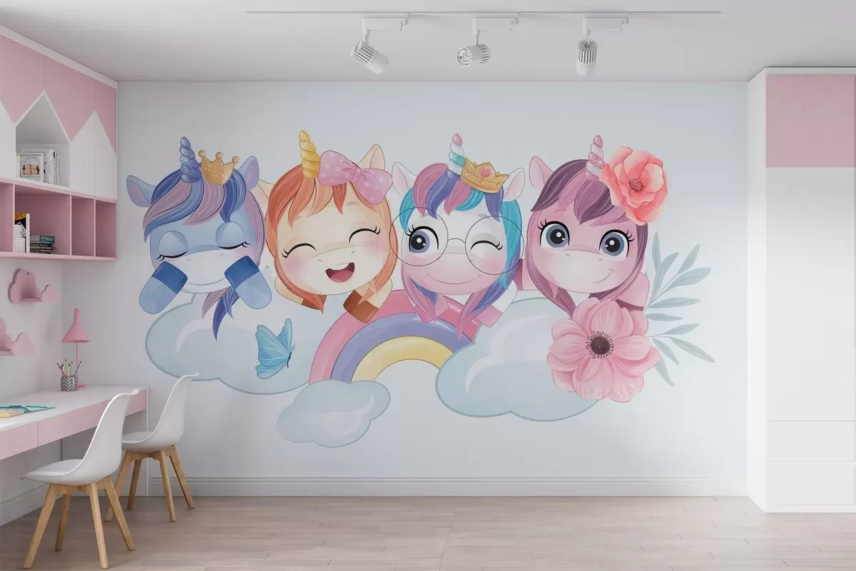 Carta da parati Simpatici unicorni tra nuvole e arcobaleni nr. w04298