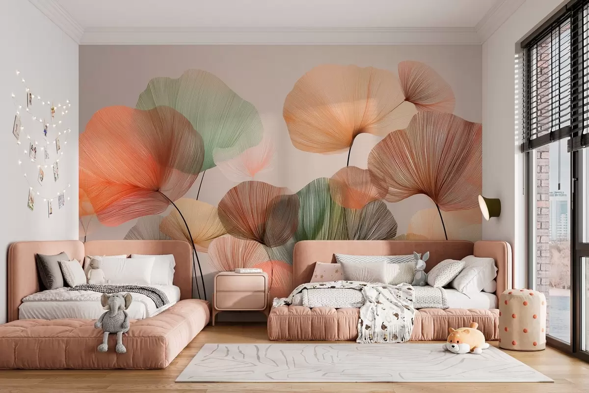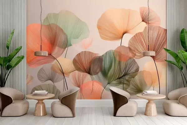 Carta da parati foglie di ginkgo multicolori con venature nr. w04305