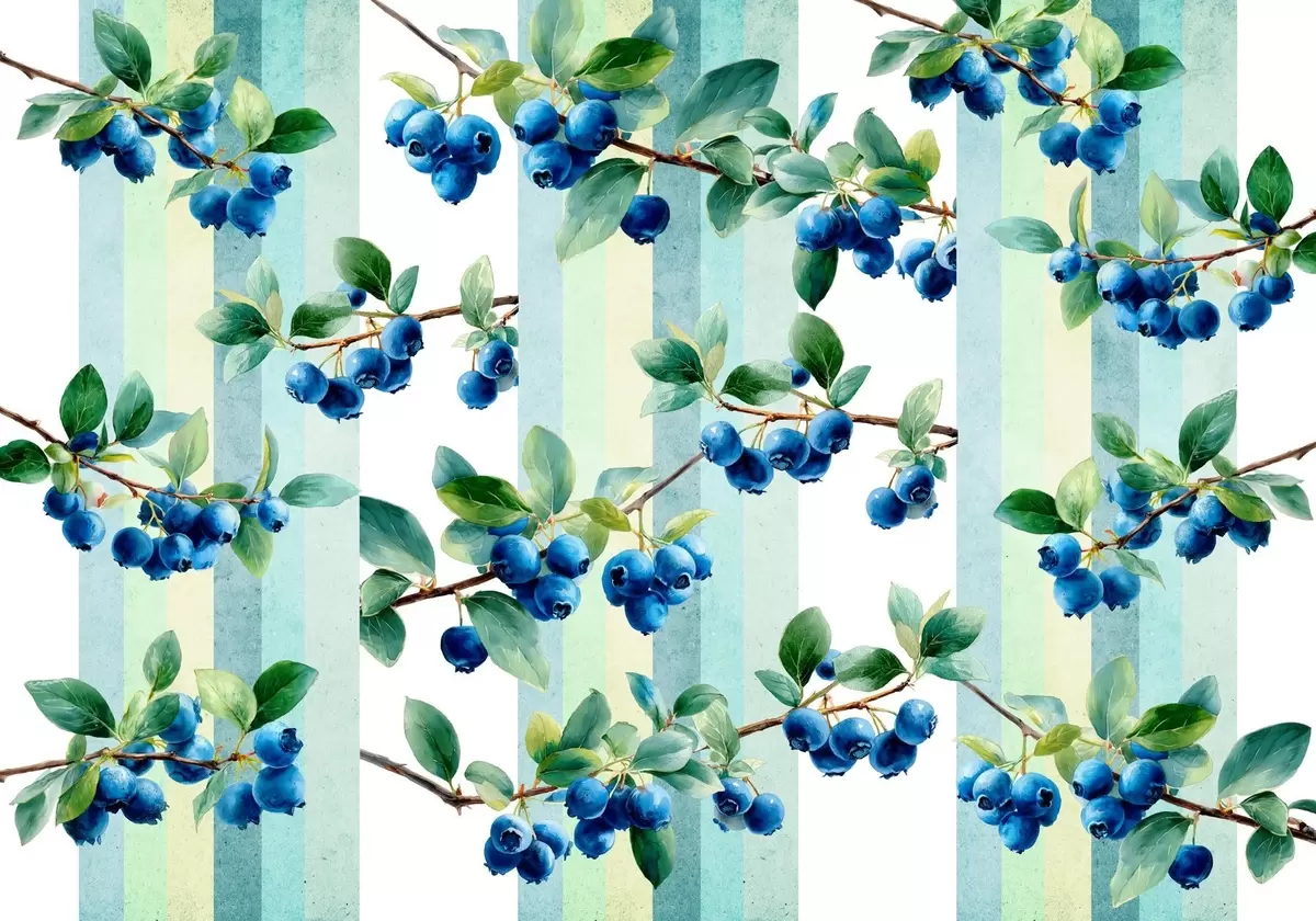 Carta da parati grappoli di mirtilli su sfondo a righe nr. w04307