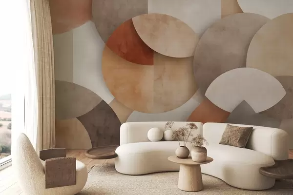 Carta da parati geometria astratta strutturata nei caldi toni del marrone e dell'ocra nr. w04310