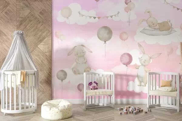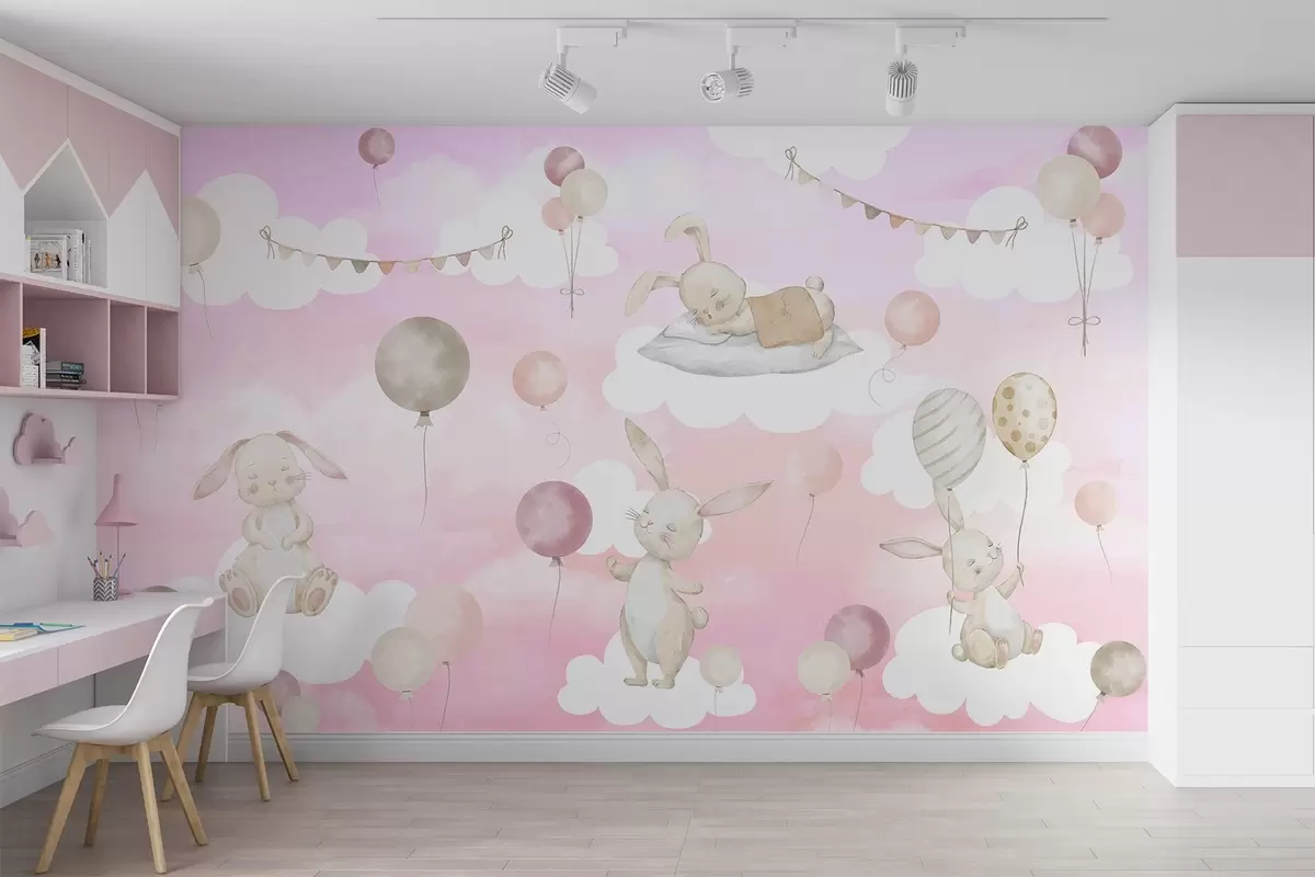 Carta da parati Conigli con palloncini sulle nuvole nr. w04337v1