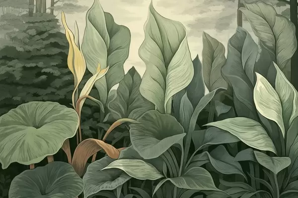 Carta da parati Illustrazione di piante tropicali in stile botanico nr. w04347