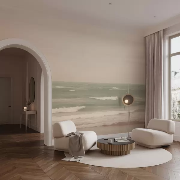 Carta da parati Paesaggio marino verde-rosa con dolci onde nr. w04348