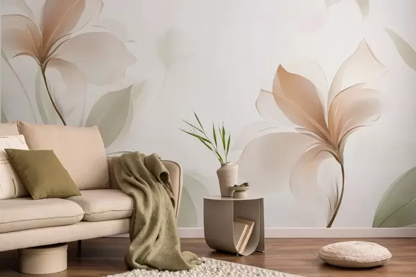 Carta da parati Fiori trasparenti nei toni caldi del beige e del rosa nr. w04397