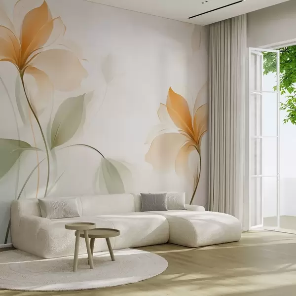 Carta da parati Fiori trasparenti con un ricco centro arancione nr. w04397v1