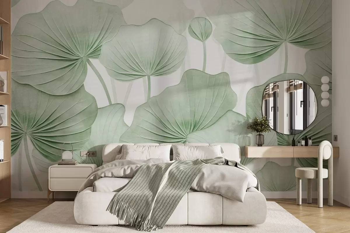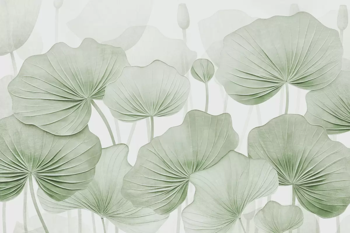 Carta da parati Foglie di loto con imitazione di una texture afflitta nr. w04412